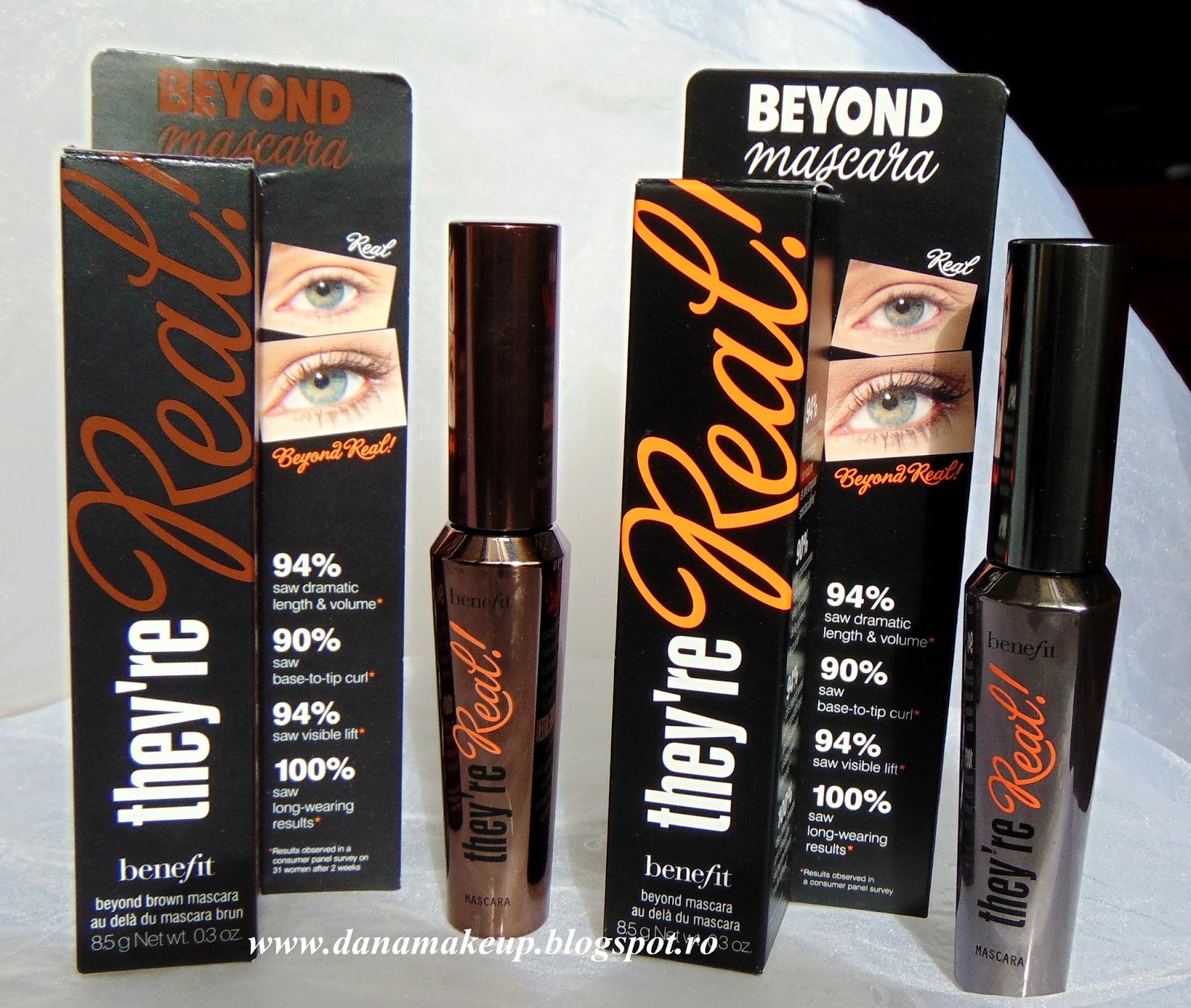 They`re Real Mascara pe maro este la fel de spectaculos si intens. Il recomand pentru machiajul de zi, pentru birou. Va garantez ca nu veti simti nevoia unei mascara neagra, dupa cum observati si in fotografiile de mai sus